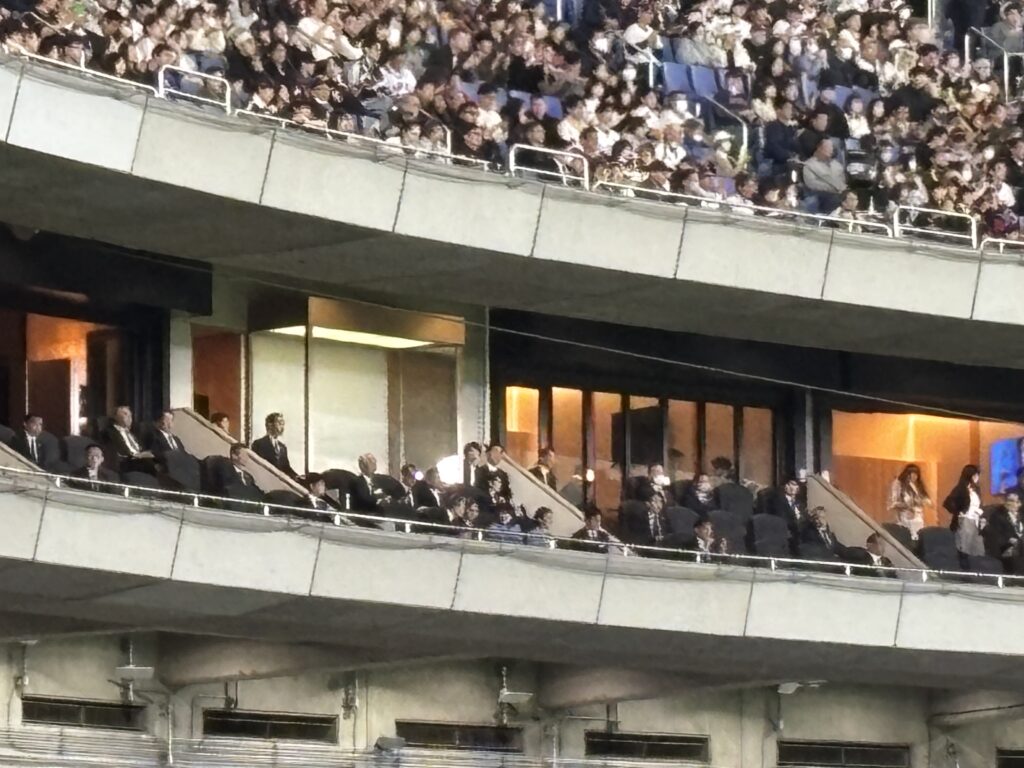 客席においでになるとのアナウンスがあり、球場ではほとんどの人がその方向に目を向け、歓声が上がりました。