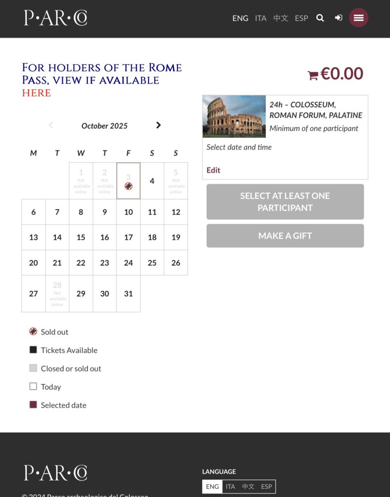 ただし フォロ・ロマーノとパラティーノの丘 には入場できます。