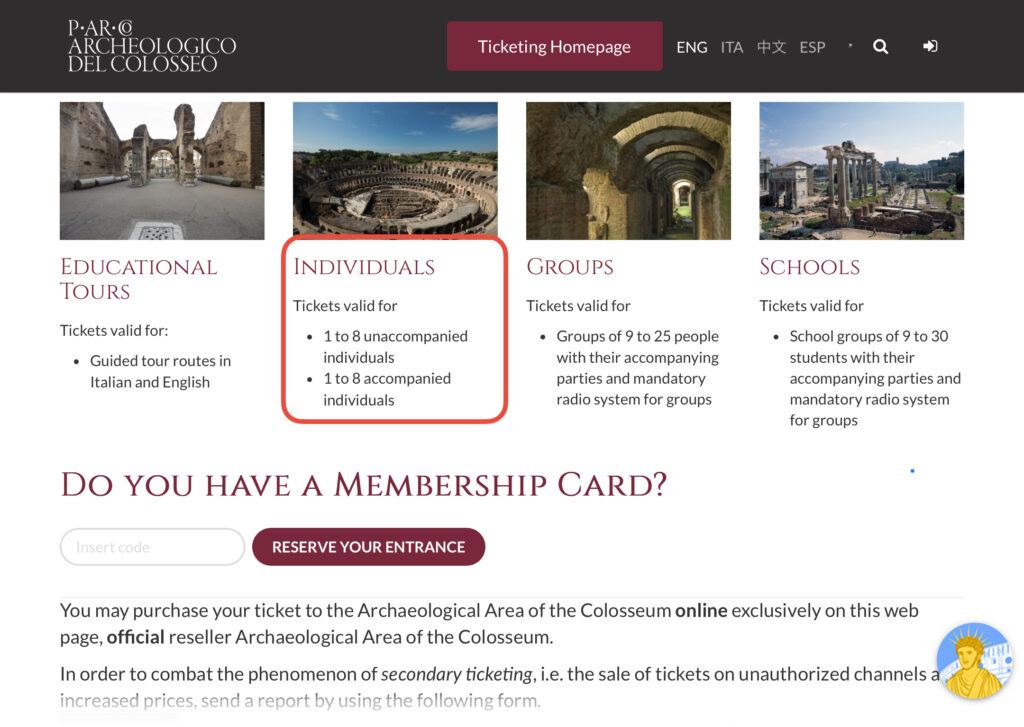 コロッセオのチケット予約には、「公式サイトから自分で予約する方法」と「ツアーサイトで日本語で予約する方法」があります。