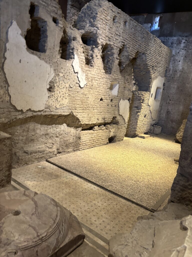 一方で、石やレンガの壁、柱の断片が残るエリアでは、建物の構造を間近に見ることができます。生活空間の広がりや建築の痕跡がそのまま残されていて、当時の住まいの造りを分かり興味深かったです。