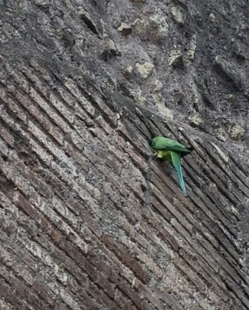 鳥が古代の壁に顔を突っ込んでゴソゴソ。餌を探しているのでしょうか。ふと「2000年前のローマでも、こんな光景があったのかもしれない」と想像してしまいました。