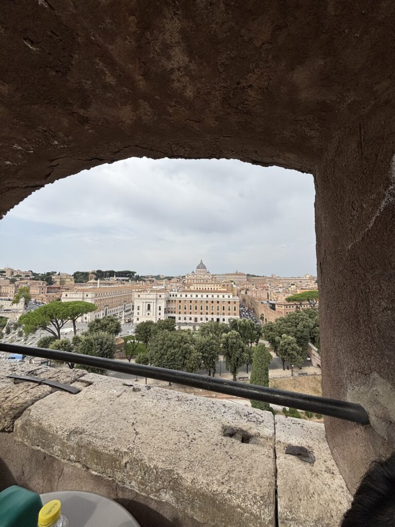 サンタンジェロ城の中にあるカフェ、テラス席からはバチカン市国を一望できます。