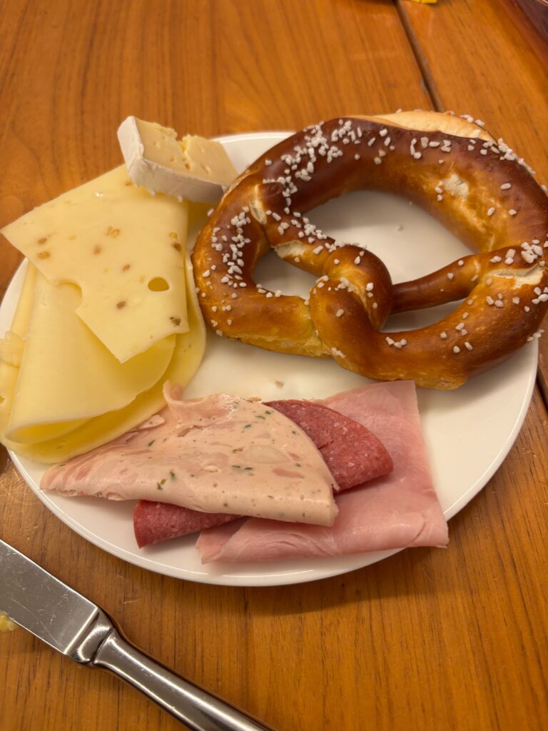 朝から本場のビールと一緒に、ちょうど出てきた焼きたてのプレッツェルをいただきました。