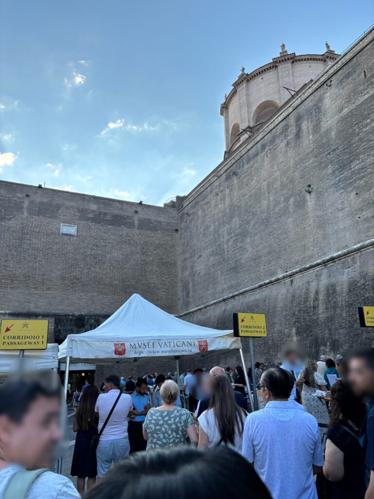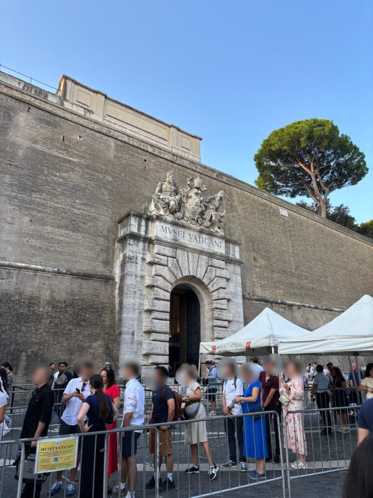 ホテルからは地下鉄で約25分。Barberini駅からA線に乗って4駅(7分)、Ottavianoで下車し、そこから徒歩10分ほどでした。パスポートチェックと荷物検査がありましたが、ほとんど待つこともなく入館できました。