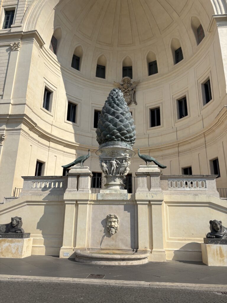 古代ローマ時代に作られた青銅の松ぼっくり像。もとはパンテオン近くの浴場を飾っていたとされ、今では美術館の中庭を代表する存在に。巨大な松ぼっくりが堂々と置かれた姿はユニークで印象的でした。