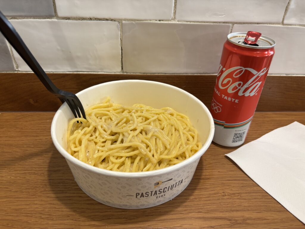 テイクアウトが中心ですが、店内にはカウンター席も少しあります。ここでカチョエペペをいただいたのでが、安くて絶品!日本でもこんな味が気軽に食べられたらいいのに…。